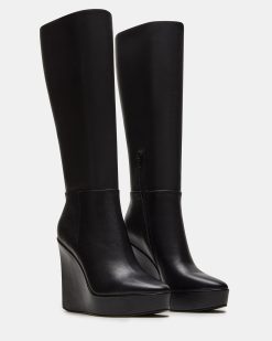The AKIRA knee-high features a wedge design and a convenient inside zipper for easy on and off. Elevate your style game with this versatile and stylish boot. perfect for any occasion.