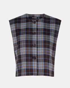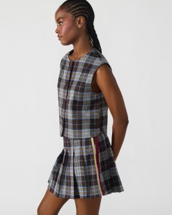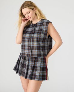 The ALESSA features a classic button-up design crafted with precision for a polished look. Its coordinating plaid pattern makes it an ideal piece for creating a cohesive matching set. blending timeless style with versatile wearability. Perfect for layering or wearing alone. this top offers both comfort and sophistication for a refined wardrobe staple.