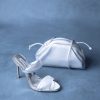 - Crossed ankle strap with buckle closure