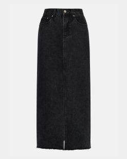 Experience effortless style with the AVANI . Crafted from high-quality denim. this maxi skirt features a flattering front slit and a raw hem that adds a touch of elegance to your look.