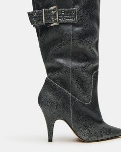 Expertly crafted. the BADDIE is both edgy and practical. Made with a pointed toe and buckle detail. these over-the-knee heeled boots offer a unique touch to any outfit. Elevate your style with these statement boots.
