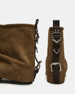 The BENJI ankle boot features a sophisticated cuffed fold-over design combined with a sleek moto-inspired silhouette. Its unique buckle detail on the back adds a distinctive edge. blending style with subtle functionality. Crafted for both comfort and statement-making appeal. this elevates any outfit with expert craftsmanship and contemporary flair.