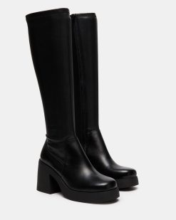 The BERKLEIGH square toe knee gives you a sleek and defined silhouette with a stretch fabric construction and platform sole with a block .