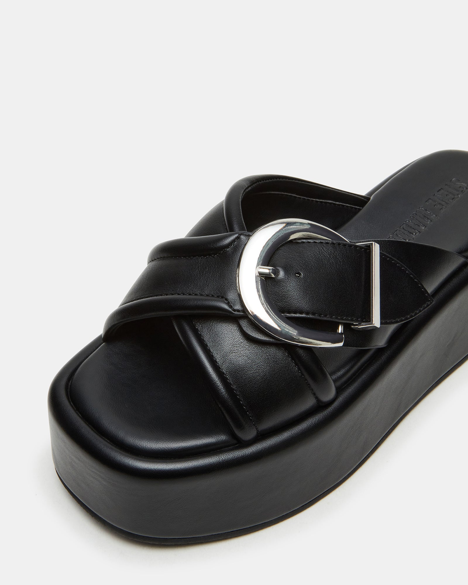 Elevate your style with the CYPHER square toe platform . The crisscross buckle design adds a touch of edginess. while the square toe provides a trendy twist. With a comfortable . these sandals are perfect for both fashion and function.