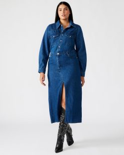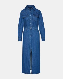 Elevate your wardrobe with our DAKODA . Crafted with a denim long-sleeve bodice. button-down maxi dress. and shank to zip front skirt. this dress exudes effortless style. The center front slit adds a touch of femininity. while the skirt pockets provide both convenience and practicality. Perfect for any occasion. this dress will be a staple in your closet.