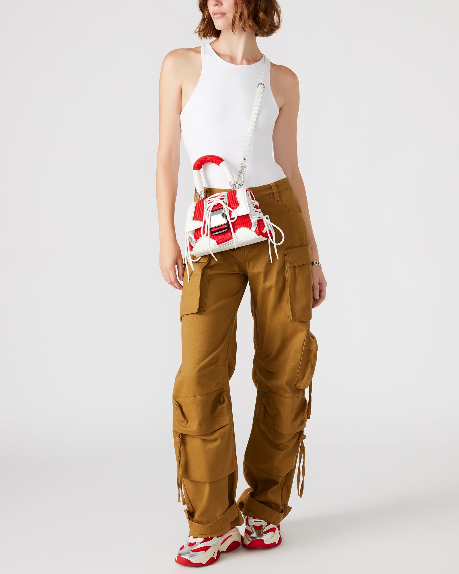 - Sneaker lace-up detail on side gussets