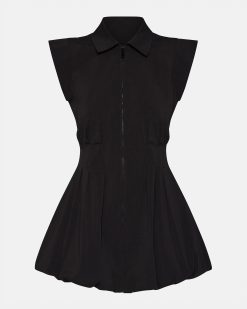 The DYANNE is a stylish mini dress featuring a zip front and bubble hem in tech nylon. With a collared neckline. this dress is perfect for any occasion and provides a modern. chic look. Made with high-quality materials. it offers both comfort and durability. Get ready to turn heads and stand out in this must-have dress.