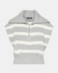 Stay stylish with the EASTON Its hooded sleeveless design. stripe pattern. and wide collar offer both comfort and fashion. The half-zipper metal closure adds a touch of practicality. while the relaxed fit guarantees a flattering look. Perfect for days on the go.