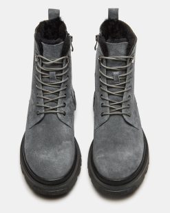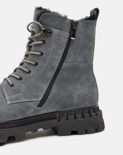 Expertly crafted with a suede upper and faux fur lining. the EISEN ankle combines style and practicality. Featuring a sturdy lug sole. inside zip. and lace-up construction. these boots offer both comfort and functionality. The pull tab provides easy on-and-off access. making them a must-have for any fashion-forward wardrobe.