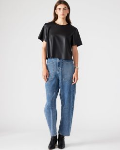 Introducing our luxurious EZRA . Elevate your style with this short-sleeved T-shirt. The metal zipper closure adds a touch of sophistication to this chic piece. Make a statement with this exclusive and elegant top.