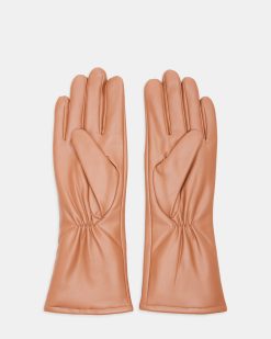 FAUX LEATHER FOREARM GLOVES TAN