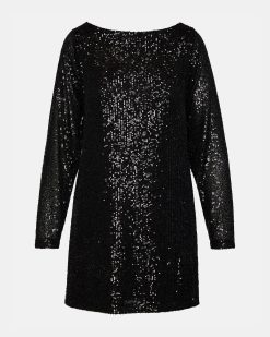 Enhance your wardrobe with the GINGER . This elegant dress features long sleeves and a sparkling sequin design. perfect for a night out. With its mini length. it will elongate your legs and add a touch of glamour to any occasion. Dress to impress in this eye-catching dress!