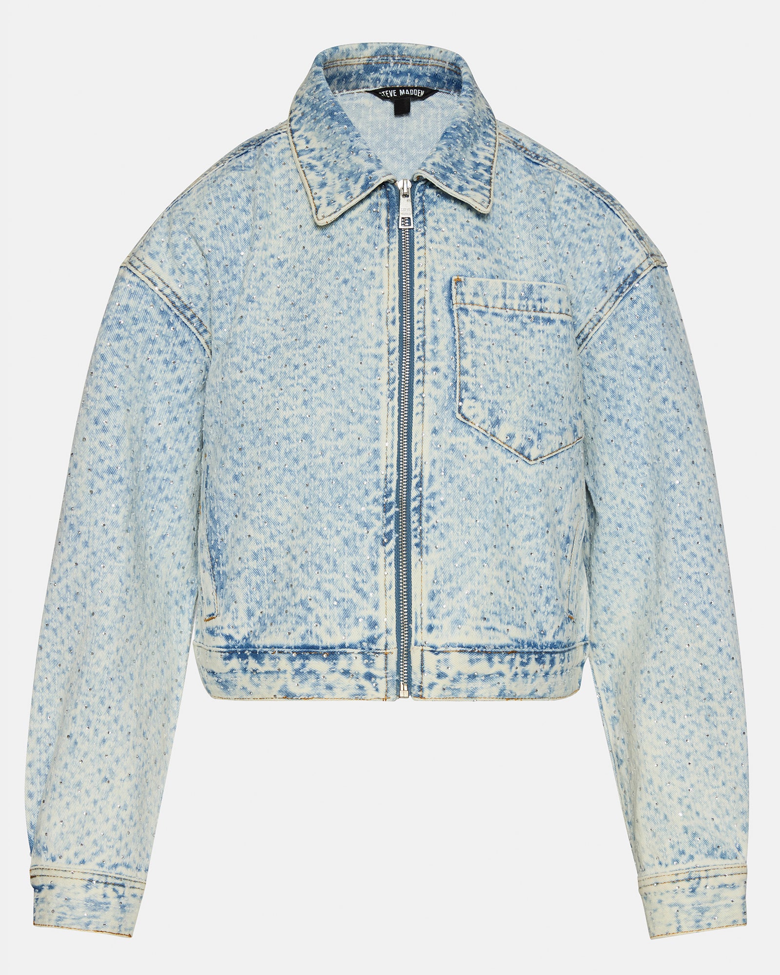 The GLACIA denim is a versatile and stylish addition to any wardrobe. Made of durable denim with a collared design and front zipper closure. this long-sleeved jacket is perfect for a matching set look. Stay on trend and comfortable with this must-have piece.