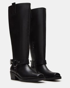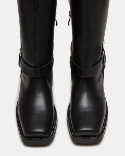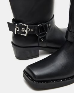 Upgrade your style with these HAWKINS Featuring a sleek knee-high design and edgy buckle detail. these are the perfect combination of fashion and functionality. The square toe adds a modern touch. making these boots a must-have for any fashion-forward individual.