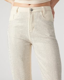 - Embellished straight leg jeans