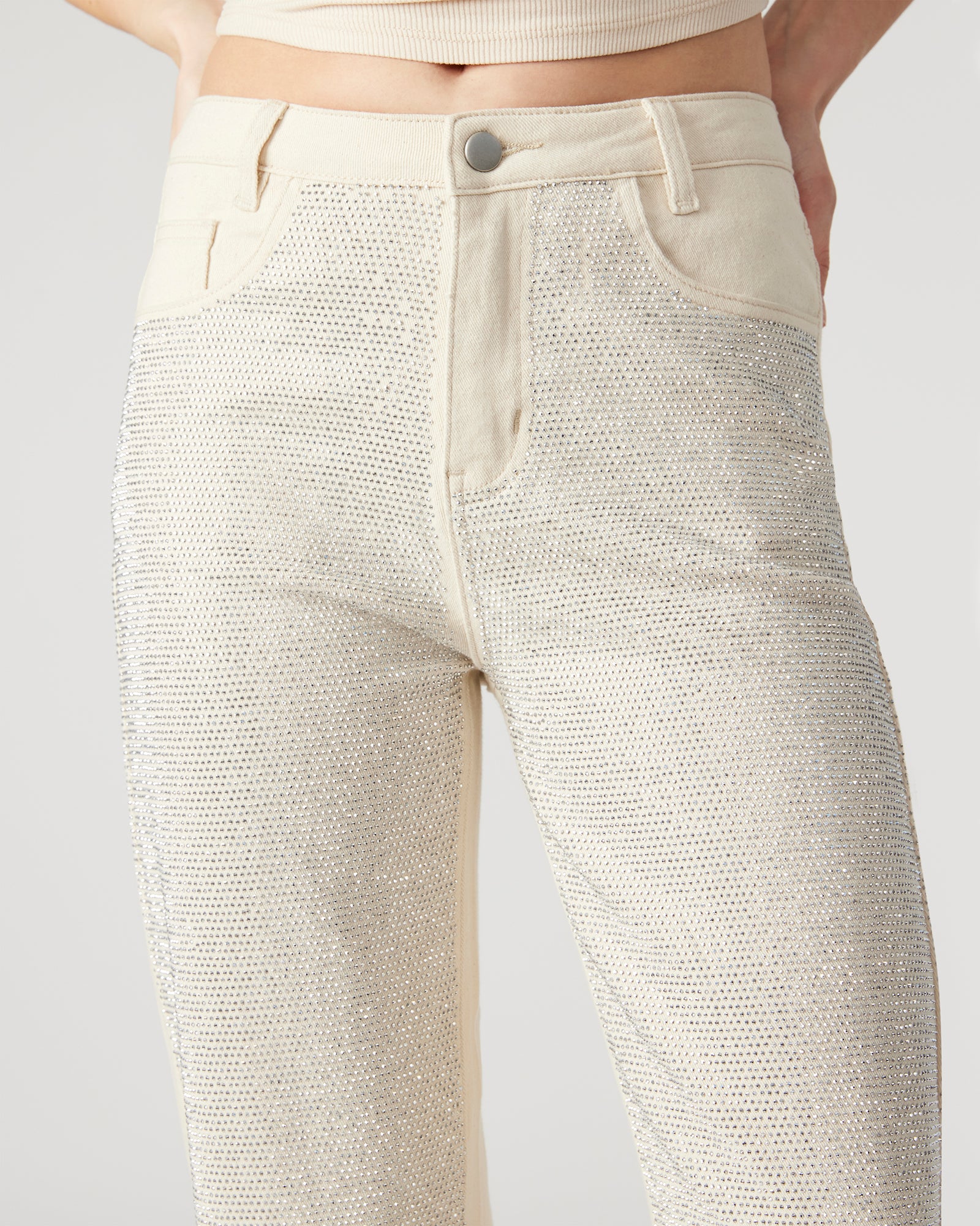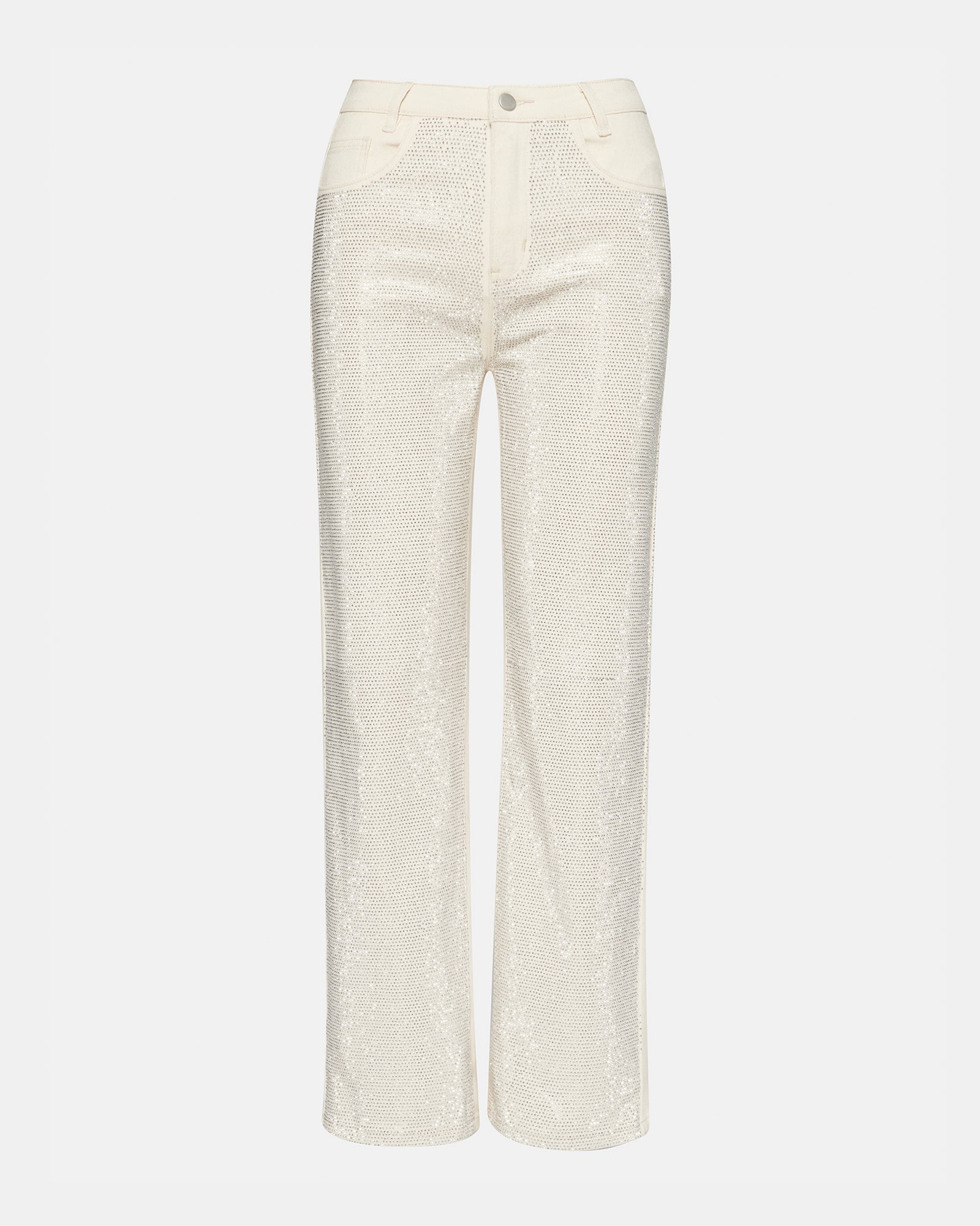 The JESSE are the perfect embellished straight leg jeans. adorned with stunning rhinestones on the front. Elevate your style with this unique and eye-catching pant. perfect for making a statement.
