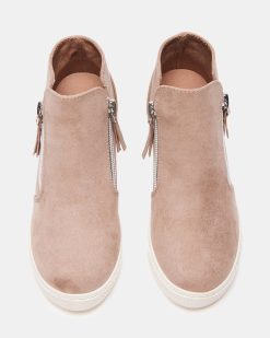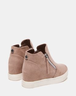 The smooth upper of the CALIBER high top sneaker conceals a low wedge. The double zipper closure at front makes it easy to get in and out.