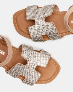 Expertly designed for . the kids’ HAYDIN sandal offers both style and functionality. Its geometric cutouts not only add a unique touch but also provide breathability for little feet. The adjustable ankle back strap ensures a secure fit while the rhinestones add a charming touch.