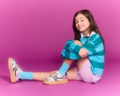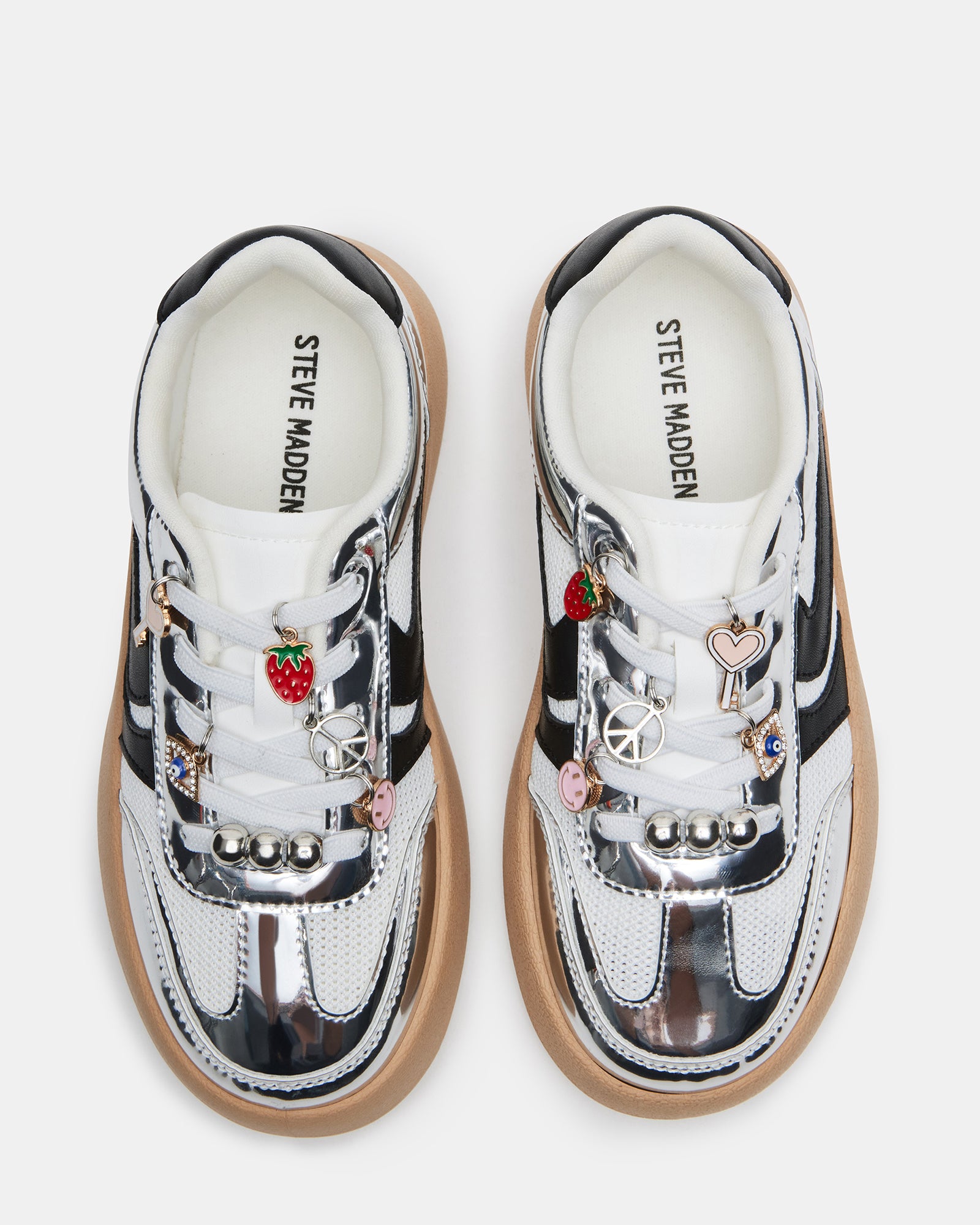 Introducing the JERSEY CHARMS – a trendy platform sneaker designed for active kids. With its low-top and lace-up design. this shoe provides both style and functionality for everyday wear. With its sleek silver color. your child will be the coolest kid on the block.