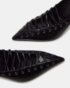 The LACELLE is a sophisticated pointed-toe with a stylish lace-up and strappy design. This shoe offers a secure fit and adds a chic touch to any outfit. With its unique combination of design elements. this heel is perfect for any fashion-forward individual looking to make a statement.