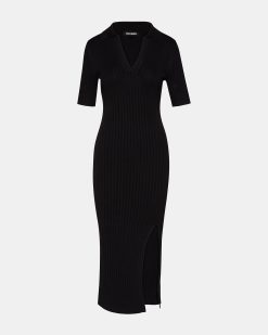 Expertly crafted for a sleek and modern look. the LINDY offers a fitted body with a short-sleeved design and collar. The textured stitching adds a touch of sophistication. while the front slit adds a subtle edge. Perfect for any occasion. this dress will elevate your style game.