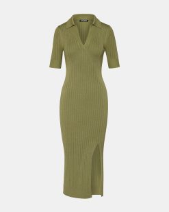 Expertly crafted for a sleek and modern look. the LINDY offers a fitted body with a short-sleeved design and collar. The textured stitching adds a touch of sophistication. while the front slit adds a subtle edge. Perfect for any occasion. this dress will elevate your style game.