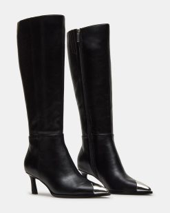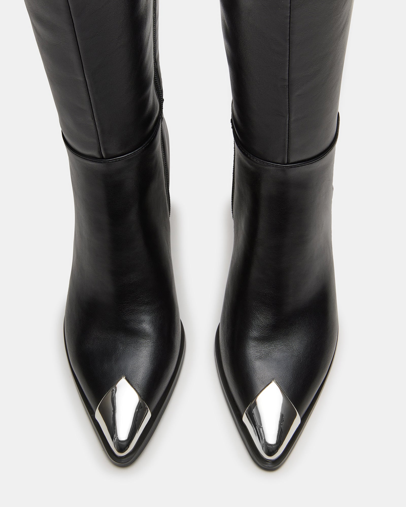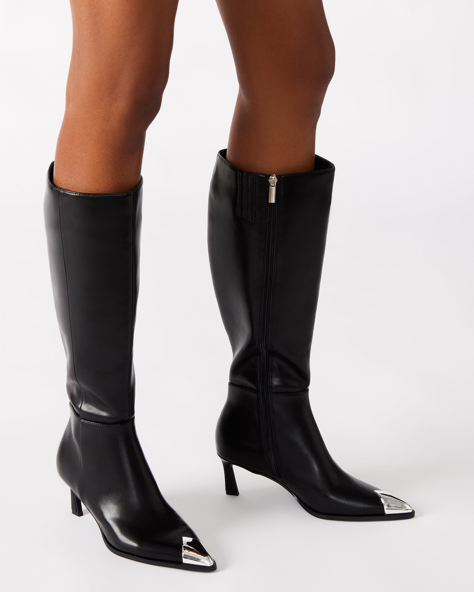 The LUCIANA is a stylish and sophisticated knee-high with a sleek and pointed toe. Its silver toe cap adds a touch of elegance to any outfit. Expertly crafted for comfort. these boots are perfect for any occasion.
