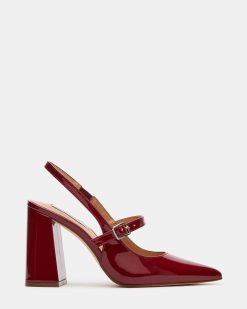 The MAEGAN point toe pump features both a slingback strap and a Mary Jane-style buckled top strap with a block providing a solid base for the design.