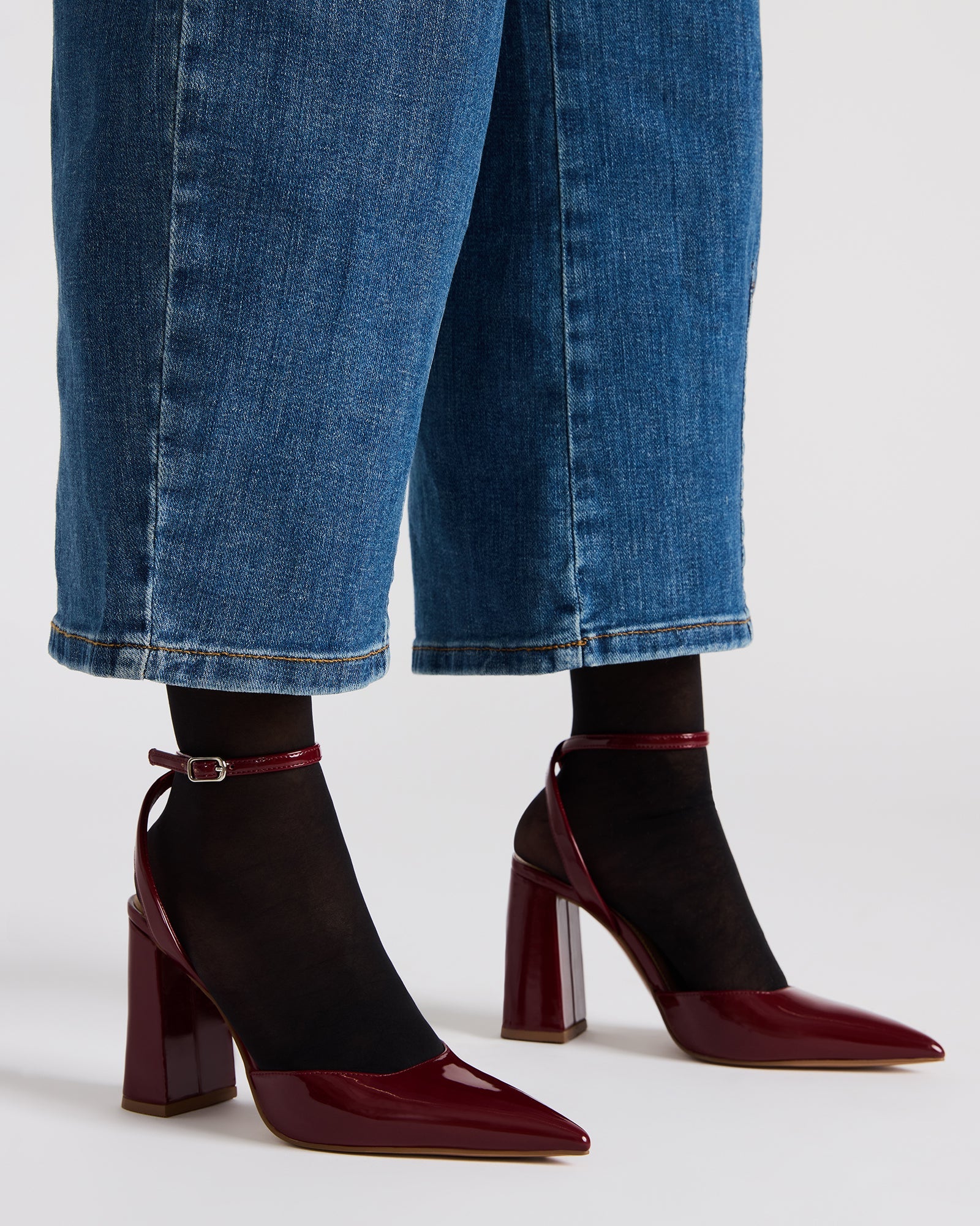 Elevate your style with our MATTEA . The pointed-toe and crisscross strap add elegance while the block heel offers a classic touch. Perfect for any occasion. these pumps will take your outfit to the next level.