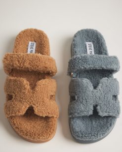 This faux shearling edition of the MAYVEN flatform features the same geometric front strap cutouts. adjustable top strap. and molded footbed. with faux shearling inside and out for a soft. fuzzy update to an already-comfy design.