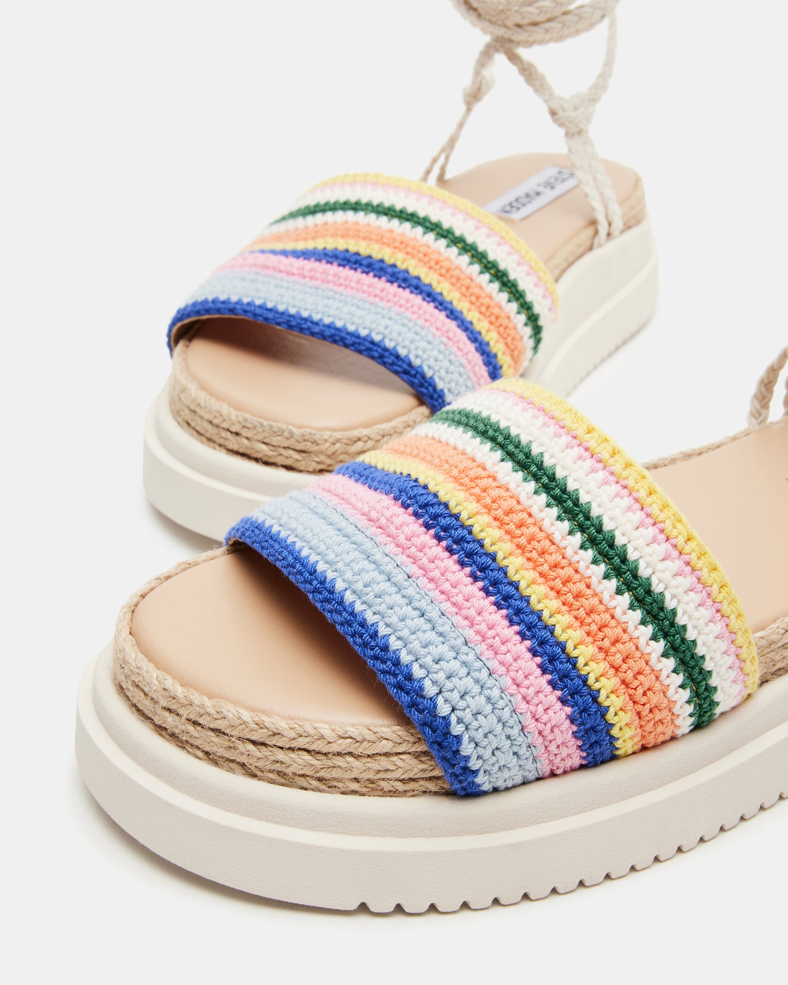 Expertly designed for comfort and style. the MERTHA is a lace-up with leg ties that provide a secure fit. With a trendy flatform design. these sandals are perfect for adding a touch of height to any outfit.