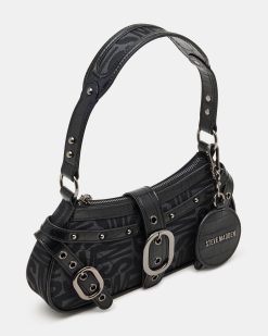 The MOTORR bag combines Y2K-inspired logo print with vintage buckle detailing for a distinctive look. Designed with both style and function in mind. it features a magnetic snap and top-zipper closure to secure your essentials. Its spacious interior comfortably fits a large phone and includes front and back wall pockets for organized storage. An attachable mirror bag charm adds a practical. stylish touch. making this shoulder bag a versatile accessory for everyday use.