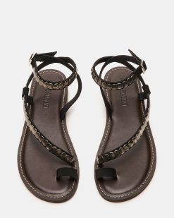 The SAGA – a strappy flat featuring a rounded toe and secure ankle strap. With its sleek design. this sandal provides both style and comfort for any occasion. The perfect choice for those seeking a secure fit with added elegance.