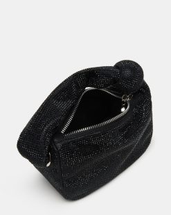 Introducing the SPARKLY bag. This evening mini bag boasts a soft design and decorative puller. perfect for dressing up or down. The crystal-encrusted detail adds a touch of glamour while fitting a phone for convenience.