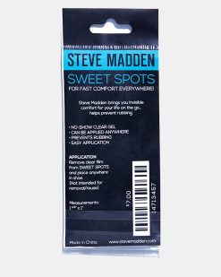 Steve Madden brings you invisible comfort for your life on the go….helps prevent against rubbing. SWEETSPOTS will help prevent painful blisters on your heels. and can be applied anywhere on your shoes to ease friction. Madden’s gel pads cushion your foot so you can walk all day (or night!) in comfort. They stay in place and keep your feet cool. dry and fresh.