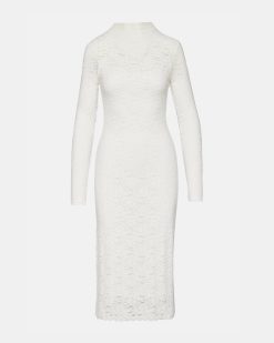 The VIVIENNE features a lined midi length sheer mesh outer layer finished with a mock neck and thumbhole sleeves.