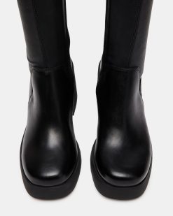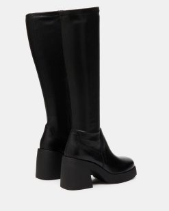 The BERKLEIGH square toe knee gives you a sleek and defined silhouette with a stretch fabric construction and platform sole with a block .