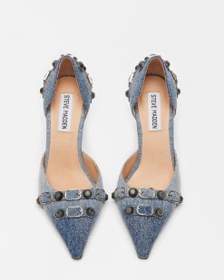 The DALI features substantial textured studs and buckles embellishing the point toe and the back of the ankle.