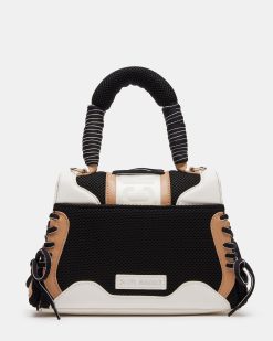 The DIEGO bag is a structured trapezoid bag with athletic-inspired details like mesh overlay panels. sneaker style lacing. and an oversized quick release buckle closure.