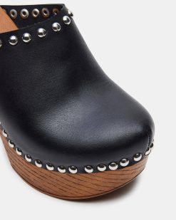 Elevate your style with the DUTCHESS platform . Featuring a wooden bottom and clog design. this shoe will add a unique touch to any outfit. The studded details add a subtle edge. Walk confidently with the sturdy platform and enjoy the added height and comfort.