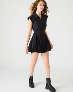 The DYANNE is a stylish mini dress featuring a zip front and bubble hem in tech nylon. With a collared neckline. this dress is perfect for any occasion and provides a modern. chic look. Made with high-quality materials. it offers both comfort and durability. Get ready to turn heads and stand out in this must-have dress.