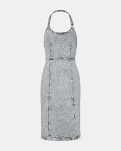 Expertly crafted. the GIA DENIM is a must-have for any wardrobe. Its side slit adds a touch of sophistication. while the back zipper closure ensures a perfect fit. Made from high-quality materials. this dress is both stylish and durable. Perfect for any occasion.