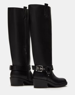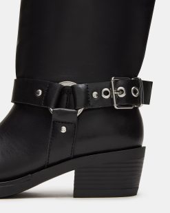 Upgrade your style with these HAWKINS Featuring a sleek knee-high design and edgy buckle detail. these are the perfect combination of fashion and functionality. The square toe adds a modern touch. making these boots a must-have for any fashion-forward individual.