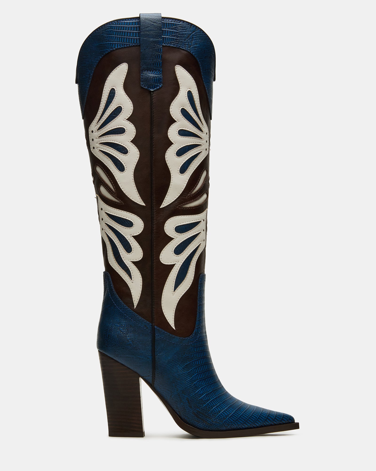 Step into the bold KAZ. a sophisticated pointed-toe featuring a stable block heel for all-day comfort. The striking. unique colorway offers versatile styling options while maintaining authentic Western design elements. Expertly crafted to provide both statement style and practical wearability.