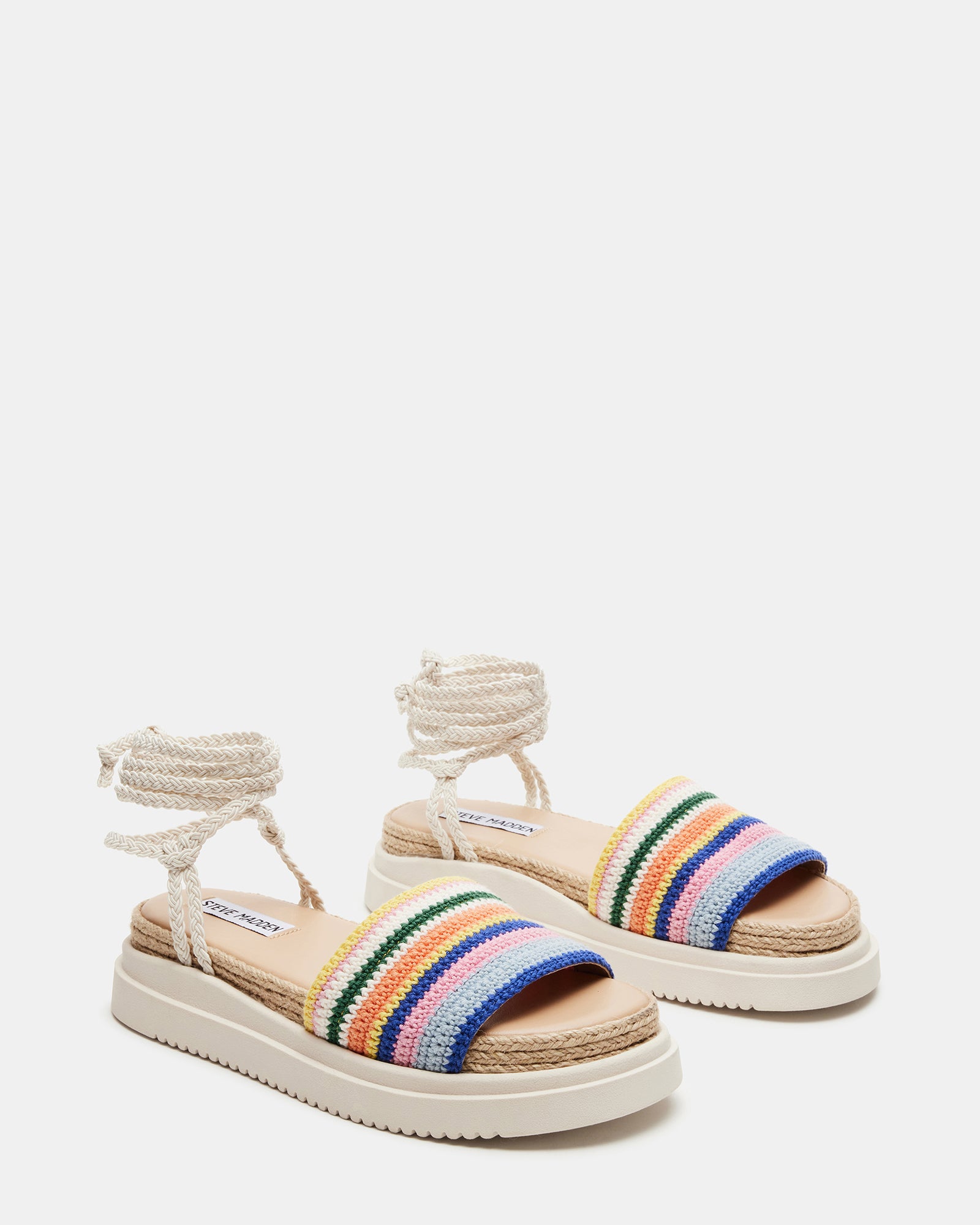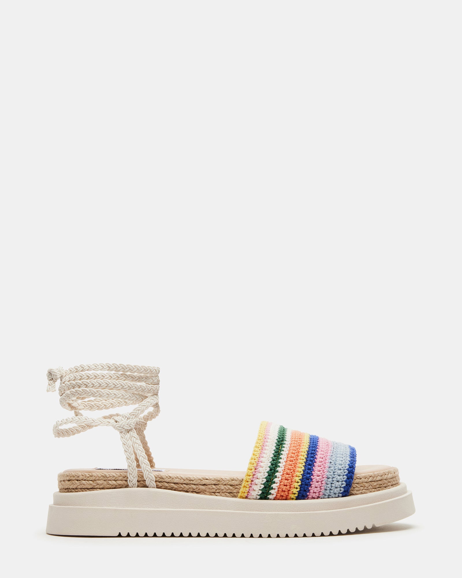 Expertly designed for comfort and style. the MERTHA is a lace-up with leg ties that provide a secure fit. With a trendy flatform design. these sandals are perfect for adding a touch of height to any outfit.