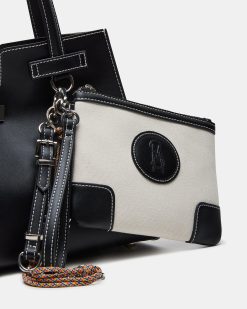 Introducing the sleek and versatile ONYX bag. This shoulder strap tote bag features a secure turn-lock closure. making it perfect for daily use. It also comes with an attachable wristlet. complete with a top-zipper closure and a logo patch on the front for added convenience and style. Upgrade your bag collection with this versatile handbag.