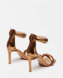 A square toe. a stiletto . and bubbled straps give the PARTAY its distinct silhouette.
