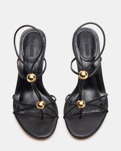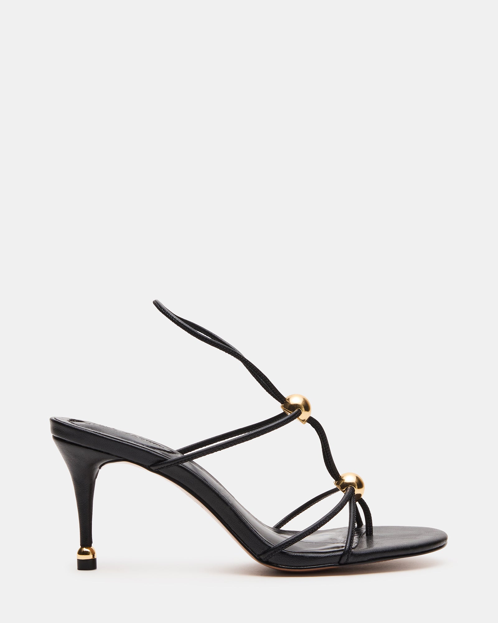 Introducing the RAMOS. the perfect combination of elegance and edge. Featuring a strappy stiletto adorned with gold hardware accents. these shoes will elevate any look. Step out in style and confidence with these stunning heels.