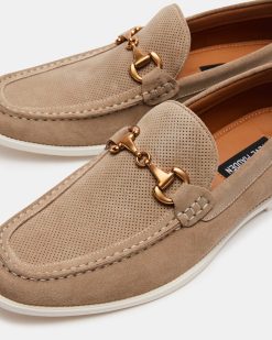 Expertly crafted with luxurious suede. the RENZZI features a sleek. slip-on construction and metal bit embellishment across the vamp. Designed with a classic moc toe. these loafers offer both style and comfort. Elevate any outfit with this sophisticated addition to your wardrobe.