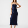 The TORI has a rolled collar and cuffed short sleeves. with an adjustable gathered tie-front waist and a high-low hem. The dress is finished with a washed satin texture. giving it a polished look.